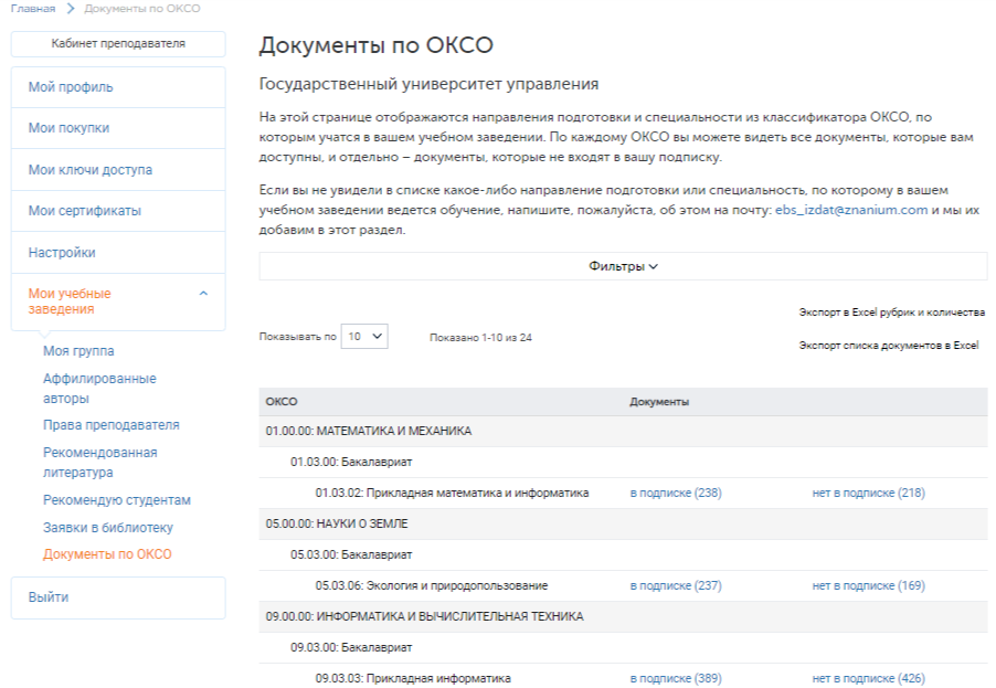 Проанализируйте состав документов в Вашей подписке. Убедитесь, что в подписке достаточно документов для обеспечения учебных программ.