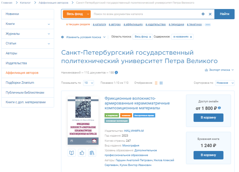 представляющих различные учебные и научные заведения. Также информация об аффилиации авторов доступна в карточке книги. Вы можете выбрать книгу интересующей Вас тематики и перейти из нее на вкладку