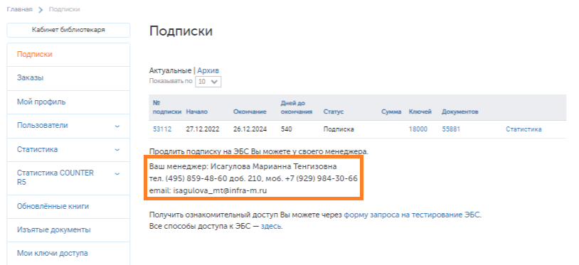 Вы можете оформить у своего менеджера ЭБС заказы на подписку необходимых